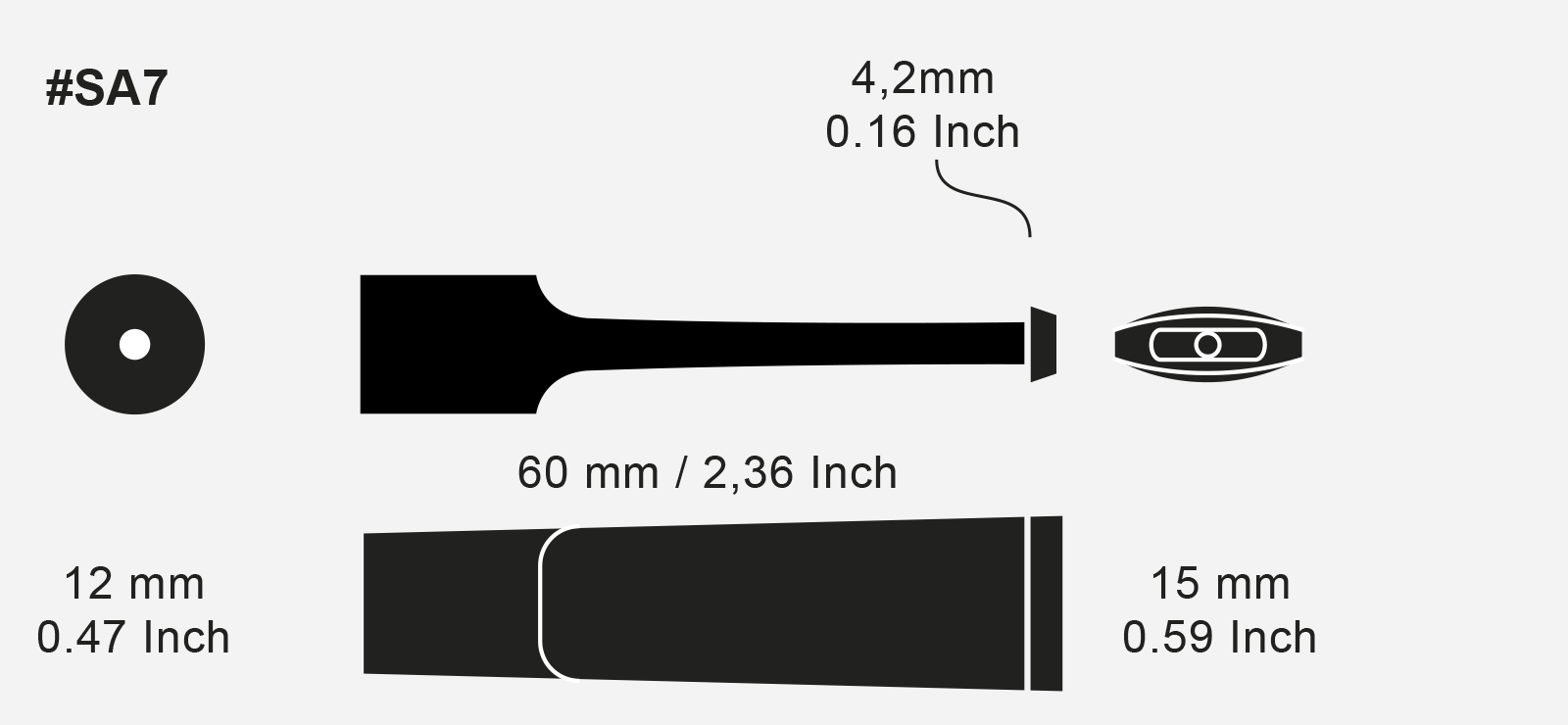 Length: 60 mm. / 2.3 inch,